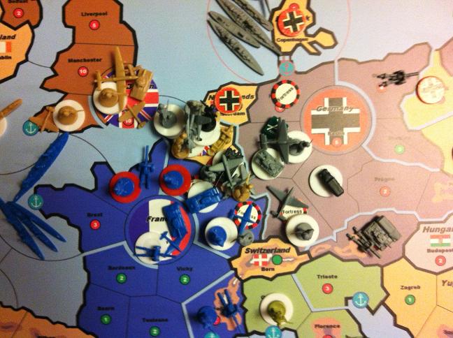 Normally, the Allies would counter-move after the Axis are finished doing their moves, but France, UK and Poland (the only active Allies at the start) are considered to be first time attacked by Germany and therefore suffer ‘surprise attack’.  (I know that France and UK declared war on Germany, not the other way around, but their inaction in the first few months is replicated by this rule)