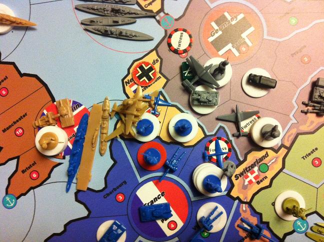 Normally, the Allies would counter-move after the Axis are finished doing their moves, but France, UK and Poland (the only active Allies at the start) are considered to be first time attacked by Germany and therefore suffer ‘surprise attack’. (I know that France and UK declared war on Germany, not the other way around, but their inaction in the first few months is replicated by this rule)