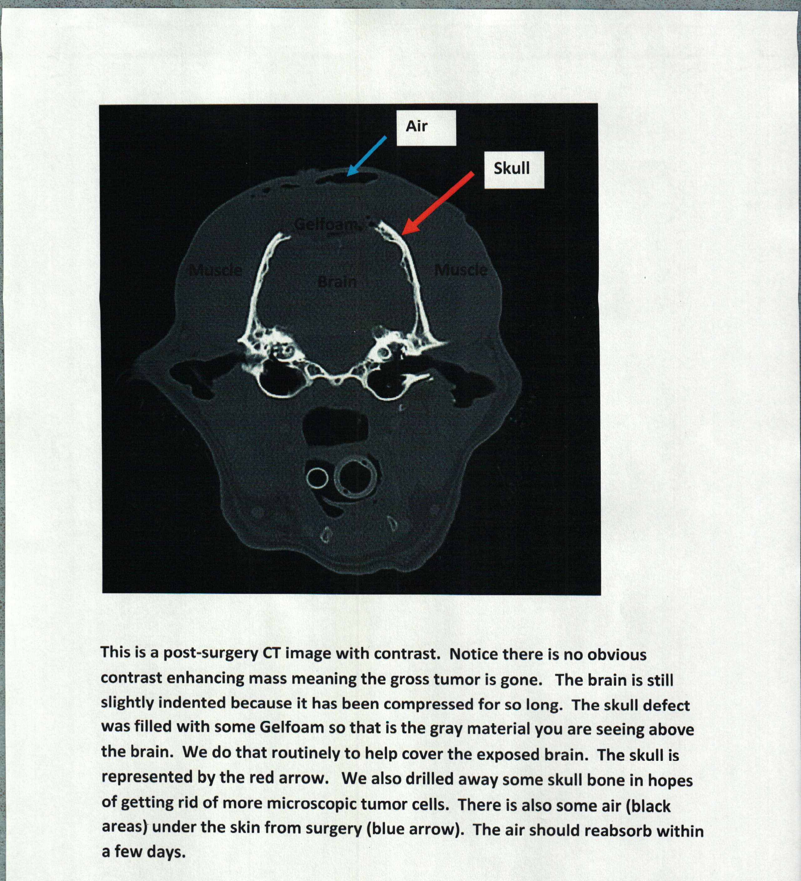 Dr. Chen managed to get better than 90%+ of the tumor. Which means that Bear’s life expectancy is extended even farther, and now has the option of still going for a “cure” scenario, which is that we hit the area with a series of Radiation over 3 weeks.