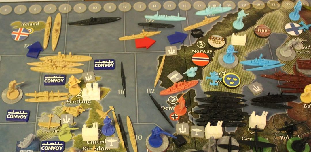This fundamental implies that the allies can get out-sized benefits from larger-than-needed transport options. UK with 6 transports in the north, usa with any amount of transports in the south. The allies definitely don’t want just the minimum needed to get their units to the front in a steady shuck. They want large numbers of tranports placed in ways that force germany to have to over-defend, or give up defending territory. The allies also have to constantly be aware of what they are giving up if they move their transports out of range of german squares (say, to drop off units in archangel, or for the usa to get distracted dropping off units in southern Africa). Obviously sometimes you want to do those things, but there’s always a cost in terms of germany freeing up its forces to take on the Russian front.